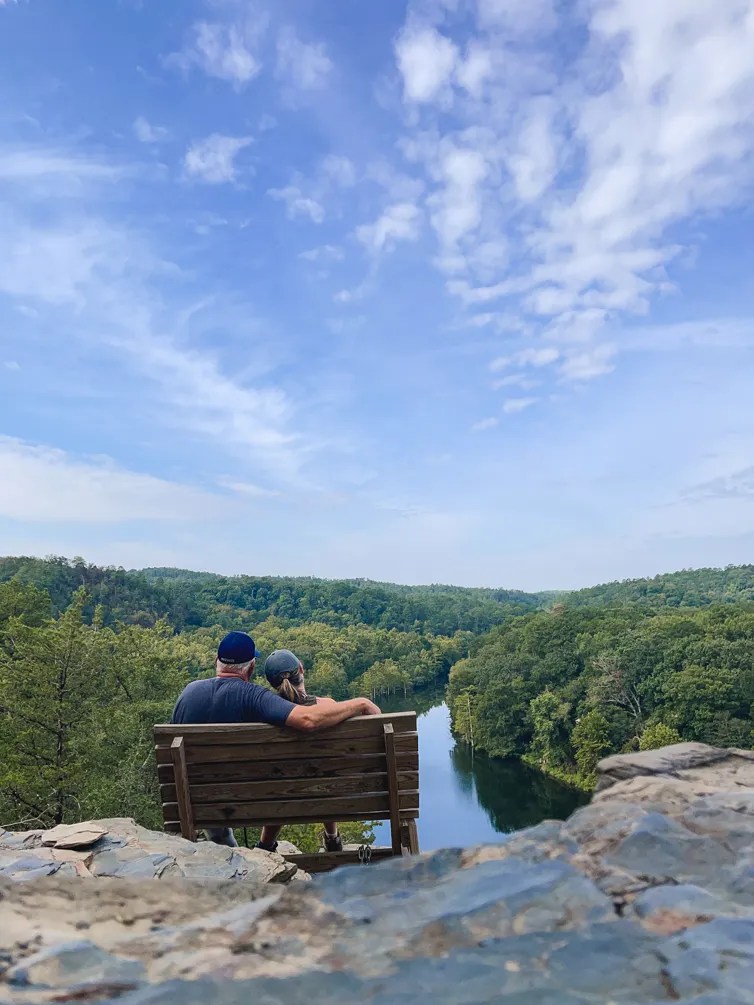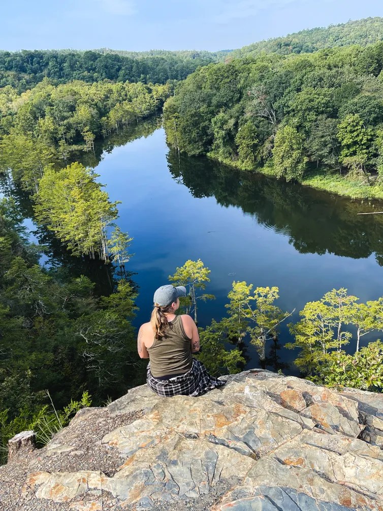 This trail took us immediately uphill toward the beautiful overlook. It’s very straightforward and led to a first section that has a slightly obscured view of the overlook that’s still worth taking a look at. Then, we continued on, to a more obvious overlook with a bench bolted to the top of the overlook. We sat up there for several minutes, we listened to the water flow and saw blue herons gracefully take off from the swamp-like tree grove at the edge of the river. This trail is super short, but you can make a loop out of it to get a little extra mileage in.